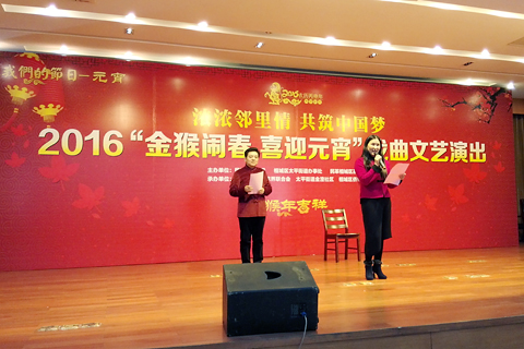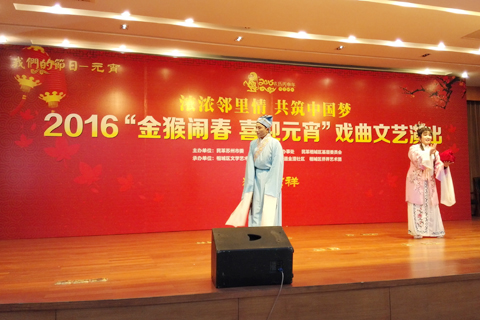 2月17日下午,民革苏州市委和民革苏州市相城区基层委员会联合相城区太平街道,在金澄社区为社区居民送上了一台“2016金猴闹春喜迎元宵戏曲文艺演出”。中共相城区区委常委、统战部部长蒋炜鼎,副部长李伟良应邀出席活动。民革苏州市委副主委瞿筱霞、太平街道金澄社区书记曹接林致辞。