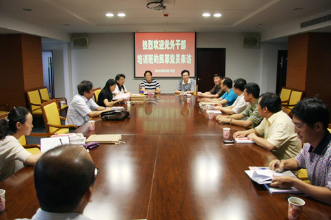 徐雁副主委认真听取了学员们的发言后,代表民革省委对大家的到来表示欢迎。民革江苏省委一贯重视统战系统组织的各类党外干部培训班,希望各位学员珍惜民革提供的平台,从本职工作和研究领域出发,认真学习,加强交流,全面提高政治理论水平,增强大局把握能力,为将来更好地开展工作、实现江苏经济社会跨越式发展提供帮助。徐雁副主委还盛情邀请大家今后利用各种机会,经常来民革省委交流学习、共同进步。