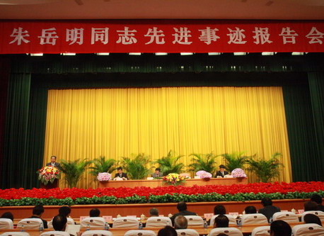 在报告会上,河海大学党委宣传部部长万国彤同志,朱岳明同志生前同事、助手和课题组成员、河海大学水利水电学院副教授强晟同志,朱岳明同志生前学生、河海大学水利水电学院08级硕士研究生郑占强同学结合自己所见、所闻、所感,从不同角度讲述了朱岳明同志的先进事迹。