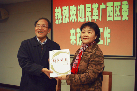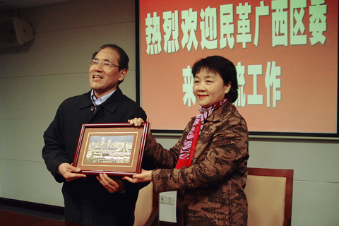 3月20日下午,民革广西自治区委主委刘新文一行26人来民革江苏省委进行工作交流。殷志强副主委代表民革省委对民革广西区委同志的来访表示热烈欢迎,民革省委机关办公室、宣传处的同志参与接待与座谈。殷志强副主委向广西客人介绍了江苏政治经济、历史文化以及民革工作。刘新文主委代表广西民革感谢江苏民革的盛情款待,并邀请江苏民革的同志到广西参访,两地民革领导互赠礼品。民革广西区委的同志还参观了民革历史画廊。(文/雷中 图/杨玲)