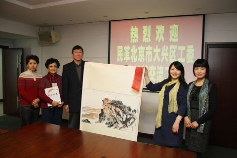 两地民革同志就民革组织、宣传、书画等工作进行了交流。民革北京市大兴区工委向民革省委赠送了首都博物馆研究员、民革党员画家张世琪的国画作品《金顶霞光》,民革省委向客人赠送了《群英风采》系列丛书。为纪念辛亥革命一百周年,民革北京市大兴区工委骨干党员一行二十余人在宁期间拜谒了中山陵,参观了“总统府”。(文/雷中 图/刘宁)