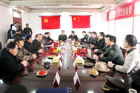 殷志强副主委向部队官兵简要介绍民革组织的情况,以及民革江苏省委开展“同心•博爱行”活动情况,并对部队的热情欢迎表示感谢。他说,在这庆新年,迎新春之际,组织艺术家们进军营,一是为了丰富部队官兵的业余文化生活,为部队营造良好的军营艺术文化氛围;二是向海岛官兵们表达心中的敬意;三是送上节日的祝福。