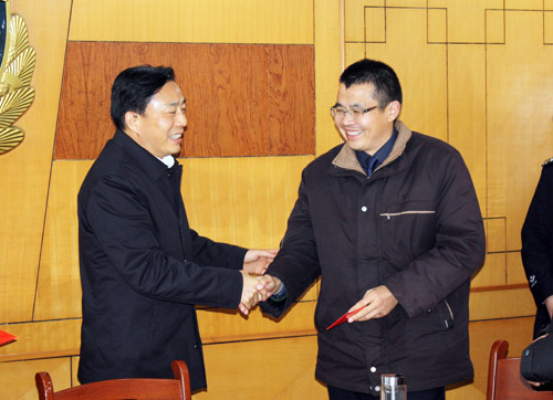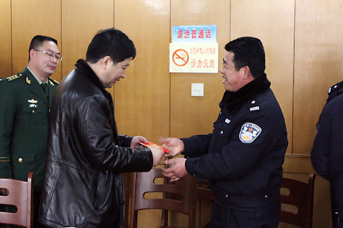 1月30日上午,省政协副秘书长、民革江苏省委副主委殷志强,省政协常委、民革江苏省委常委孙达华等领导,在省公安厅党委委员、政治部主任左锁粉的陪同下,前往盱眙县公安局开展春节慰问活动,并为困难公安民警送上慰问金。(联络处)