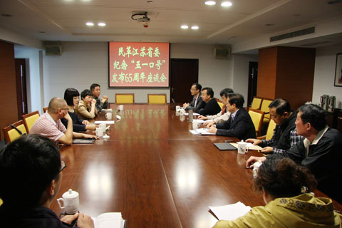 4月28日上午,民革江苏省委在民革省委机关会议室召开纪念“五一口号”发布65周年座谈会。会议重温了“五一口号”内容,畅谈了学习体会。部分在宁省政协委员、民革省委委员、民革省直支部主委、青年党员代表和民革省委机关处室负责人参加座谈会。民革省委秘书长朱振中主持座谈会并讲话。