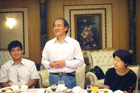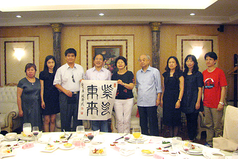 6月14日中午,民革省委副主委殷志强在南京与台湾发展研究院副院长陈麟、梅明慧、黄智惠等一行,就两岸民间经济、文化、艺术、体育、宗教等共同关心的话题深入探讨,并就如何保护利用好南京天妃宫文物资料、加强两岸合作交流交换了意见,宾主还互赠书籍及民革党员书法作品。南京市音协名誉主席庄汉,民革省委办公室主任雷中、联络处处长任晓红,江苏省美术馆青年油画家庄重等陪同参加了接待活动。