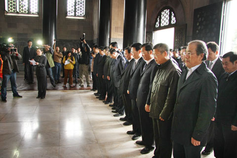 老同志戴顺智、周桑漪、武继烈,省政协秘书长吴洪彪,省政协办公厅、专委会和省级机关有关部门负责人,各民主党派省委、省工商联、省人民团体负责人,南京市有关方面负责人,知名人士共200余人参加了谒陵活动。(文/宣传处 图/刘宁)
