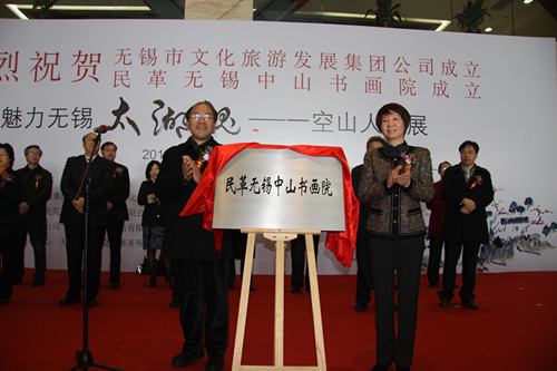 12月18日上午,民革无锡市委中山书画院揭牌仪式在市博物院隆重举行,为祝贺民革无锡市委中山书画院成立而举办的“魅力无锡 太湖魂——一空山人画展”同时开幕。省政协副秘书长、民革江苏省委副主委殷志强,中共无锡市委常委、宣传部长王国中,无锡市人大常委会副主任、农工党无锡市委主委曹锡荣,无锡市人民政府副市长、民建无锡市委主委华博雅等领导出席仪式。无锡市人民政府秘书长吴枫峰主持仪式。殷志强副主委和无锡市政协副主席、民革无锡市委主委张丽霞为中山书画院揭牌。民革中央画院发来了贺信,祝贺民革无锡市委中山书画院成立。市有关部门负责人、民革江苏省委联络处处长任晓红、民革苏州市委副主委瞿筱霞,民革苏州市委中山书画院章念翔、杭青石以及来自各地的艺术家,民革无锡市委中山书画院成员和近百位民革党员等参加仪式。