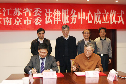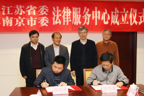 在成立仪式上,分别进行了签约和授牌。朱振中秘书长代表民革省委、袁策副主委代表民革南京市委,分别与民革党员、江苏森远律师事务所主任杨森,民革党员、江苏东恒律师事务所主任张利军签约;程崇庆主委分别向杨森主任、张利军主任进行了授牌。民革江苏省委涉外法律服务中心、民革南京市委民工权益保障法律服务中心正式成立。
