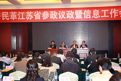 程刚主委代表民革淮安市委致欢迎词;胡臣友处长传达了近期召开的民革全国参政议政工作暨成果交流会议精神,通报了民革江苏省委2013年度参政议政工作情况;会议表彰了2013年度为民革省委提案及信息工作做出贡献的先进集体和先进个人。