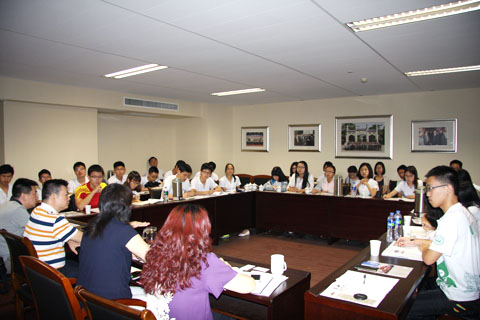 座谈会在热烈的气氛中开始。考察团成员都是从学校各院系优秀学生中选拔出来的,他们虽然对我国多党合作和政治协商制度有一定的了解,但对民主党派的发展历程、组织架构、职责职能、管理方式等了解得并不透彻。交流中,民革省委组织处首先向学生们简要介绍了我国民主党派发展概况,重点讲解了民革发展的历史脉络、组织架构和职责职能,同学们边听边记,表现出了极大的兴趣。在接下来的交流中,曾宪苓、任晓红两位处长与学生们展开热烈的互动,中山大学的学生充分发挥了“博学、审问、慎思、明辨、笃行”的校训精神,在听讲的基础上及时查找资料,在慎思的基础上提出了如“民主党派如何在现行体制下保持自有特色”、“民主党派如何做好参政议政前期调研和后期的监督落实”、“民主党派成员如何兼顾本职工作和党派工作”、“民革与台湾在陆组织的关系”等一个个颇有份量的问题,两位处长就学生提出的各类问题给予了详细的解答和互动。