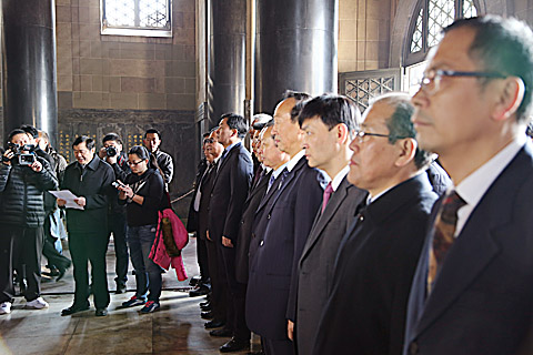继承和发扬孙中山爱国、革命、不断进步的精神,是民革的优良传统和基本特色。民革江苏省委副主委殷志强表示,每年举行的谒陵仪式既是对孙中山先生不朽业绩的缅怀,也是对祖国和平统一与中华民族伟大复兴的热切期盼。在中国近代史上,孙中山领导辛亥革命、推翻封建王朝,赢得发展主动权,规划开启了新时代。这样的民族贡献,民众不会忘记。每年,会有很多台湾同胞来南京谒陵。殷志强副主委认为,南京中山陵是两岸同胞情感共系的地方。过去,两岸敌对,相互提防,两败俱伤;现在,两岸是命运共同体,是骨肉一家人。今年是孙中山先生诞辰150周年,民革江苏省委将举办相关学术研讨会,联合出版社出版《孙中山全集》、《孙中山研究集成》,以两岸历史学者为主体共享史料、共写史书。同时,还将组织在江苏的台胞、台属、台湾青年学生拜谒瞻仰中山陵。(文/宣传处 图/刘宁)