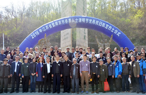 为纪念中国人民抗日战争暨世界反法西斯战争胜利71周年,4月1日上午,江苏省暨南京市各界人士在南京抗日航空烈士纪念碑广场隆重举行2016年清明凭吊抗日航空烈士仪式,深切缅怀在第二次世界大战期间在中国战场上壮烈牺牲的中、苏、美等国抗日航空烈士。民革江苏省委副主委张坚勇、南京市政协副主席王建华,以及省市民革、台盟、台联等民主党派、中山陵园管理局、南京市社科联、南京航空联谊会、烈士亲属、在宁台商、南京市大、中、小学生、东部战区空军官兵、江苏知青联盟等代表共600余人参加了凭吊活动。