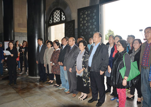 值孙中山先生诞辰150周年之际,与会人员赴中山陵,举行谒陵仪式,缅怀中国民主革命的伟大先驱孙中山先生的丰功伟绩。(文/图 联络处)