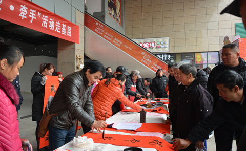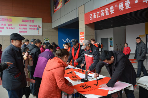 1月9日上午,新春佳节来临前夕,民革江苏省委组织民革省委文化艺术委员会的部分委员赴南京市雨花台区岱善润福城社区开展送春联、送健康、送法律“博爱·牵手”走基层活动。