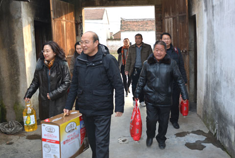 1月16日下午,民革江苏省委常委、宿迁市政协副主席、民革宿迁市委主委张华贤,民革江苏省委联络处处长任晓红率领民革党员企业家一行赴宿迁市经济开发区三棵树乡佟圩居委会慰问贫困家庭。