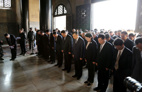 上午9时,参加拜谒的各界人士首先在博爱坊前合影留念,随后登上陵顶祭堂,在中山先生坐像前列队肃立,行鞠躬礼。在民革江苏省委副主委孔祥平的主持下,省、市人大常委会,省、市政府,省、市政协,中共江苏省委统战部、南京市委统战部有关领导,分别向中山先生坐像敬献花篮。民革江苏省委副主委薛国安、民革南京市委副主委王真理分别代表民革江苏省委、民革南京市委敬献花篮。接着,各界人士绕灵寝一周,深切缅怀孙中山先生的不朽业绩,期盼祖国和平统一和中华民族伟大复兴。