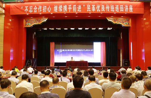 修福金从回顾历任民革中央主席关于接受中国共产党领导的重要论述导入,从四个方面阐述了民革不忘合作初心的深刻内涵,详细解读了如何继续携手前进,并对民革组织在认清和解决好自身建设难题方面给出了工作思路和方法。